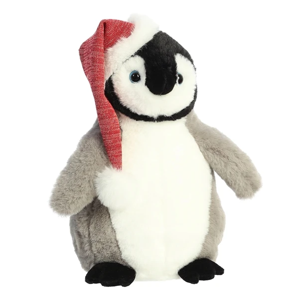 While adult penguins are black and white, the babies have soft gray feathers, which shows that the 7 Inch Stuffed Penguin with Santa Hat by Aurora is really just a youngster. Measuring approximately 7 inches, this sweet little plush penguin still has his baby feathers, but he also has a black and white face and black feet, with those telltale ‘arms’ sticking out on each side. Clearly in the Christmas spirit, the 7 Inch Stuffed Penguin with Santa Hat by Aurora is sporting a dashing red and white Santa hat that sparkles just like freshly fallen snow. Penguins have adapted to the cold and have more feathers than almost any other bird, which makes this stuffed penguin the ideal friend to snuggle up with when the seasons change. Incredibly cute and cuddly, the 7 Inch Stuffed Penguin with Santa Hat by Aurora is in pole position to win your heart, and because he has such a winning face, he will have you pen-grinning from ear to ear every time you see him. If you’re still not sure whether this darling penguin stuffed animal is the right bird for you, why don’t you flipper coin to decide?