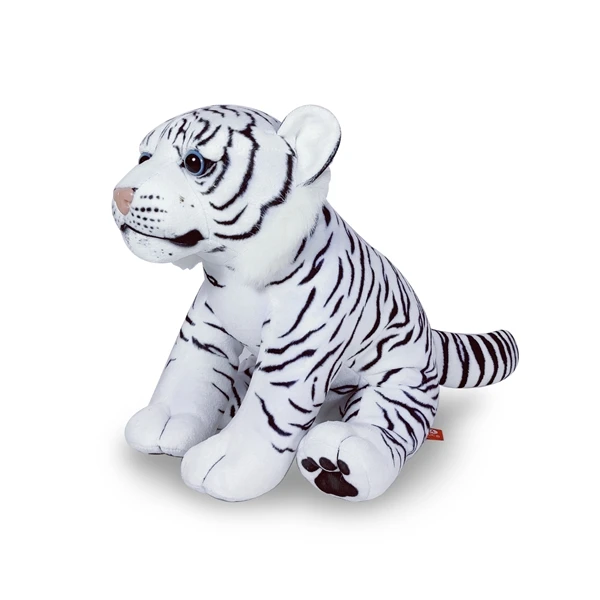 While white tigers certainly look like a breed of their own, they are, in fact, Bengal tigers with different coloring to the more recognizable orange and black. TheyÂ’re pretty rare, though, with just one born in every 10,000, which makes the Cuddlekins Living Earth Plush White Tiger by Wild Republic an extra special find. At around 15 inches, this plush white tiger has the cool good looks associated with these snowy big cats…white fur, black stripes, and a beautiful face thatÂ’s made even more stunning thanks to the special printing process. Overstuffed to ensure he holds his playful seated pose, the Cuddlekins Living Earth Plush White Tiger by Wild Republic makes a fabulous cuddle buddy as no matter how hard you squeeze him, he wonÂ’t lose his shape. Giving you cuddles with a conscience, this stuffed tiger uses all-recycled materials for his inner fill as well as his hangtag, which is printed with much more eco-friendly soy-based inks. Luxuriously soft and snuggly, the Cuddlekins Living Earth Plush White Tiger by Wild Republic can be displayed as well as played with and would look amazing in a collection of all the big cats. And while this unique catÂ’s coat can get darker as the weather in the wild changes, this white tiger stuffed animal will retain his pristine color all year round.