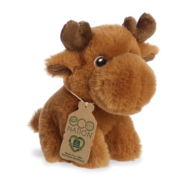 Set this moose loose in your life and get ready for it to spread eco-friendly cuteness everywhere! The Eco Nation Mini Stuffed Moose by Aurora has embroidered features, soft plush and is made from 100% recycled materials. This stuffed moose is a great sidekick for any adventure, and it makes it even cooler than its made from recycled materials. Theres no better feeling when snuggling up with your new stuffed friend than knowing that it was made thoughtfully in regards to our planet. And at just 5 inches, this little friend is the perfect size to take along with you wherever you go! If youre looking for an adorable, loveable stuffed animal but youre also trying to reduce your personal environmental footprint, the Eco Nation Mini Stuffed Moose by Aurora is a great choice. The Eco Nation line by Aurora is full of environmentally conscious plush, so you can have peace of mind knowing that your new stuffed friend didnt contribute to global plastic pollution. And luckily you dont have to compromise on cuteness to have a stuffy thats eco friendly! The Eco Nation Mini Stuffed Moose by Aurora, as well as all of the Eco Nation plush items, are made with fabric and stuffing made from recycled plastic bottles, they have embroidered eyes instead of plastic, and they have no plastic beans inside. You wont find any unnecessary plastic here!