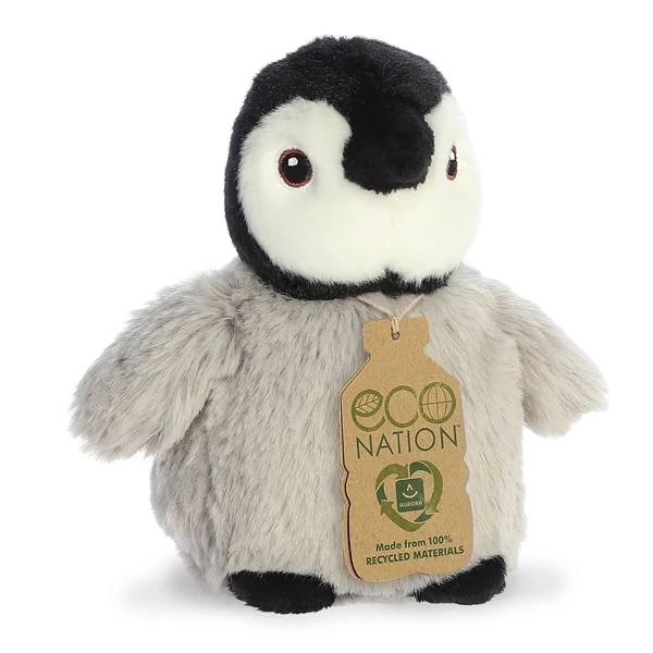 Some species of penguins are endangered, which is why the Eco Nation Mini Stuffed Penguin by Aurora uses only 100% recycled materials to help prevent pollution, and the subsequent climate change thatÂ’s responsible for their dwindling numbers. Due to a totally cool process, this plush penguin started out as a number of plastic water bottles, and became a soft and snuggly plushy with eco-friendly fur and inner fiber fill. Measuring approximately 5 inches, the Eco Nation Mini Stuffed Penguin by Aurora is just a chick, and is covered in a soft, downy gray fur, with a black and white face, and black flippers to help him waddle along (did you know a group of penguins on land is called a waddle, too?). Super cute with embroidered eyes to continue the planet-protective ethos, this stuffed penguin makes a fab companion for both indoors and out, and will help you to feel less ice-olated when you spend time on your own. Always in a good mood, the Eco Nation Mini Stuffed Penguin by Aurora will never give you the cold shoulder, and while you and this penguin stuffed animal might be polar opposites, he will make an awesome friend for life.