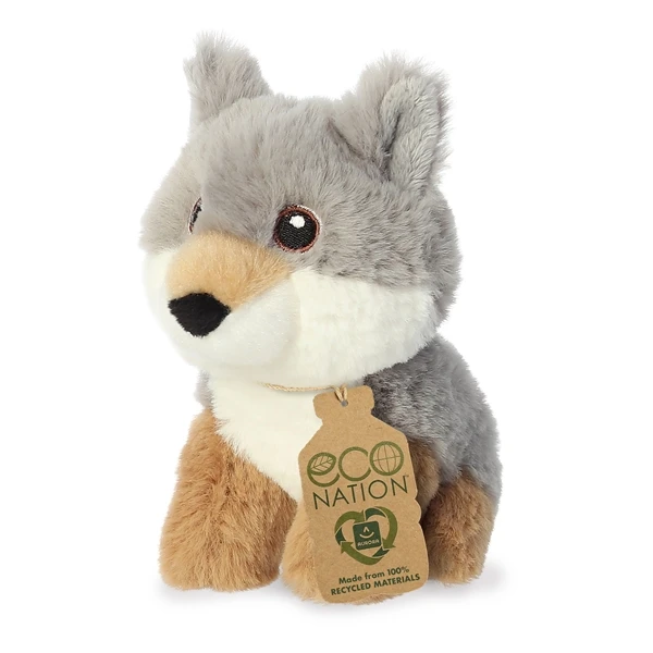This eco-friendly stuffed wolf will have you howling with excitement after one look! The Eco Nation Mini Stuffed Wolf by Aurora has embroidered features, soft plush and is made from 100% recycled materials. This stuffed wolf is a great sidekick for any adventure, and it makes it even cooler than itÂ’s made from recycled materials. ThereÂ’s no better feeling when snuggling up with your new stuffed friend than knowing that it was made thoughtfully in regards to our planet. And at just 5 inches, this little friend is the perfect size to take along with you wherever you go! If youÂ’re looking for an adorable, loveable stuffed animal but youÂ’re also trying to reduce your personal environmental footprint, the Eco Nation Mini Stuffed Wolf by Aurora is a great choice. The Eco Nation line by Aurora is full of environmentally conscious plush, so you can have peace of mind knowing that your new stuffed friend didnÂ’t contribute to global plastic pollution. And luckily you donÂ’t have to compromise on cuteness to have a stuffy thatÂ’s eco friendly! The Eco Nation Mini Stuffed Wolf by Aurora, as well as all of the Eco Nation plush items, are made with fabric and stuffing made from recycled plastic bottles, they have embroidered eyes instead of plastic, and they have no plastic beans inside. You wonÂ’t find any unnecessary plastic here!