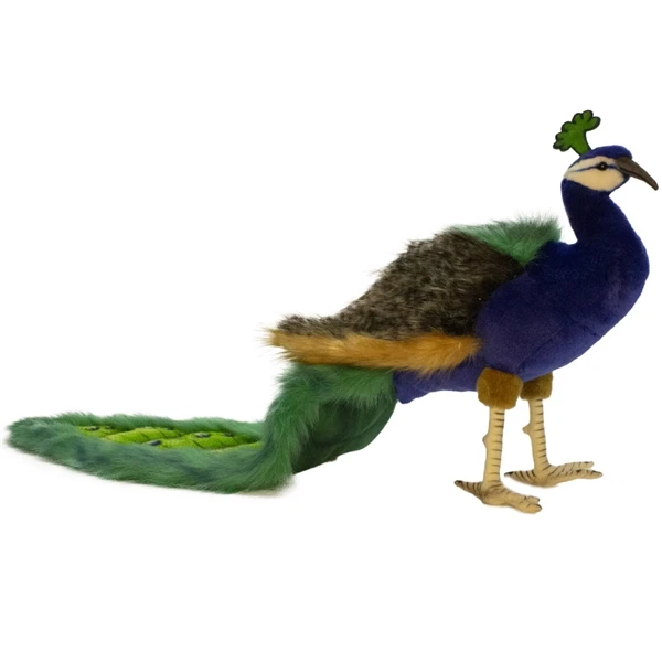 Hansa stuffed animals, including the Handcrafted 13 Inch Lifelike Peacock Stuffed Animal, meet or exceed all U.S. and European safety standards and are recommended for ages three and up. Each lifelike stuffed animal is designed by artists using portraits of the animal in its natural habitat. The stuffed animal’s custom designed coat is carefully hand cut by skilled craftsmen for a distinctive look and unique personality. Every piece comes with a teaching tag describing, in detail, the animal’s habitat, lifestyle, gestation period, care of young, and eating habits. These true-to-life stuffed animals look great in dens, offices, and display cases and also make excellent playmates. We suggest surface washing for this peacock stuffed animal.