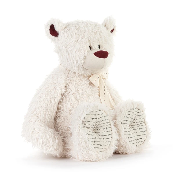 Deliver a big message in a big way with the Jumbo LOVED Plush Cream and Red Teddy Bear by Demdaco. Measuring an impressive 37 inches, this huge plush teddy bear will make teaching children about empathy and compassion super easy and a lot of fun. At first glance the Jumbo LOVED Plush Cream and Red Teddy Bear by Demdaco might look like any other stuffed teddy bear, but look a little closer and you will notice that he is a little bit scruffy and a little bit tattered, with cream colored fur that looks like it hasnÂ’t been brushed in a while. But itÂ’s this perfectly imperfect appearance that will show your little one that life is about celebrating our differences, and that itÂ’s whatÂ’s on the inside that counts, because inside the Jumbo LOVED Plush Cream and Red Teddy Bear by Demdaco is a whole lot of love that heÂ’s just waiting to give to the right person. With a removable hang tag printed with the sweetest verse, this teddy bear stuffed animal also has hand lettering on the bottom of all four paws with more words of wisdom for them to absorb, and a red corduroy nose and matching ears to add a vibrant pop of color.