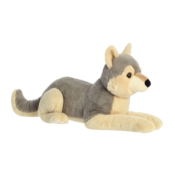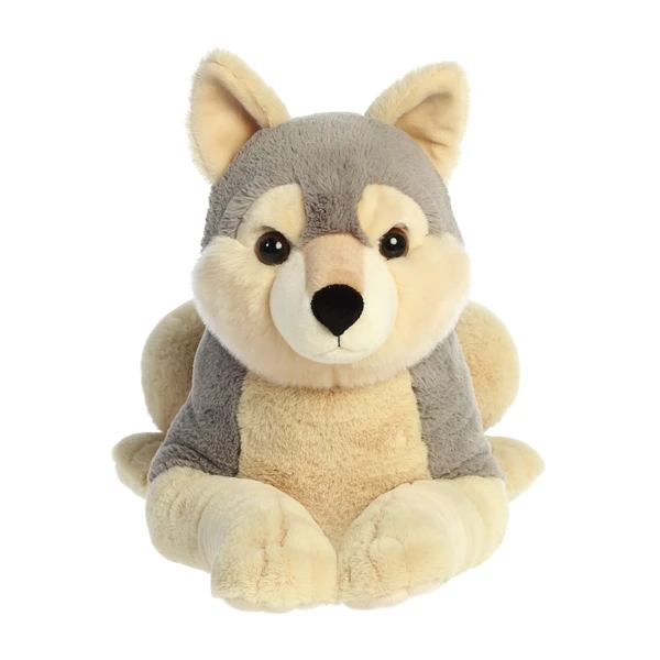When wolves fall in love, they do so for life, so the Jumbo Plush Wolf Super Flopsie Stuffed Animal by Aurora will become your soul mate within a very short time, because you are bound to be besotted with this majestic animal. Measuring approximately 25 inches, this stuffed wolf will arrive in a relaxed position, although it could be a yoga pose because the Jumbo Plush Wolf Super Flopsie Stuffed Animal by Aurora is definitely an aware-wolf, and likes to look for his inner Zen. DonÂ’t let the stories of big bad wolves put you off, because this stuffed wolf is as gentle as they come, with incredibly soft fur and a friendly face. Packed with fiber fill and bean pellets, the Jumbo Plush Wolf Super Flopsie Stuffed Animal by Aurora is both sturdy and floppy, resulting in a plushie thatÂ’s amazing to snuggle up to, while also keeping his shape perfectly. A true friend in every sense of the word, this wolf stuffed animal does have a soft spot for special occasions, and is looking for a new forever home in which to spend the howlidays as well as the every days.