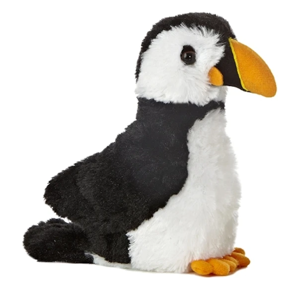 Little Muffin the Stuffed Puffin Mini Flopsie by Aurora is ready to butter you up! Measuring eight inches, this small puffin stuffed animal has soft, fuzzy black and white plush fur with little black eyes and a cute little puffin tail. Our little plush puffin sports the signature yellow puffin beak and has yellow feet to boot! Pun intended! The seven inch size and affordable price of this small stuffed puffin make it perfect for party favors, gift bags, school events, and any other occasion that calls for an adorable little hand out! A member of the Aurora Mini Flopsie family, Little Muffin the Stuffed Puffin is made from high quality child safe materials and meets or exceeds all U.S. safety standards. Recommended for ages three and up, our little plush puffin is surface washable.