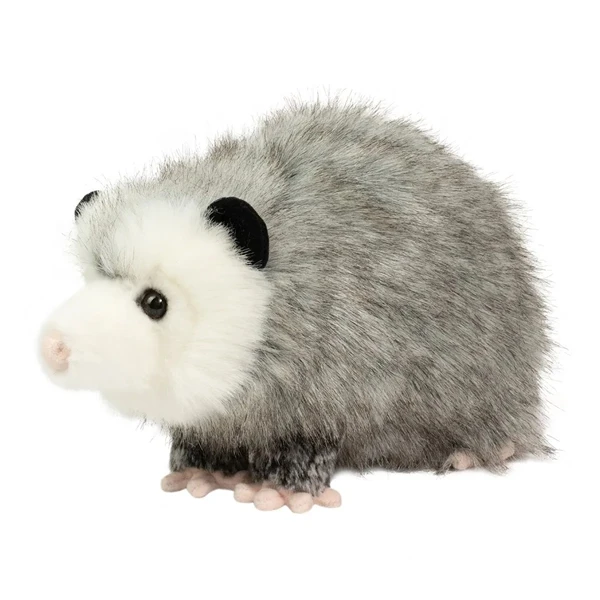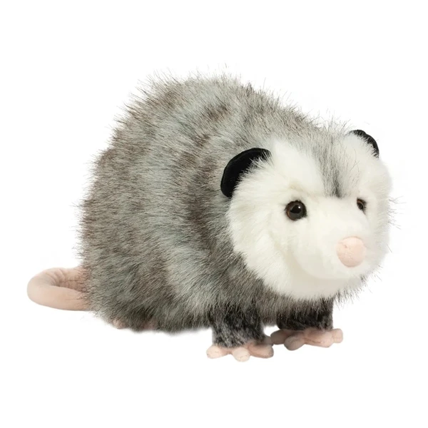 Many people see possums as a bit of a nuisance, but one look at Ozzy the DLux Stuffed Opossum by Douglas will definitely change their minds. At around 13 inches, this plush possum is one of the cutest little critters you will ever see, with an impossibly soft, gray coat and a fluffy white face with black ears, and eyes that shine brightly with delight (and a side of mischief, too). Usually found at home in hollowed tree trunks or relaxing in their nests in bushes and trees, these adorable animals tend to live outside, but Ozzy the DLux Stuffed Opossum by Douglas is looking for a new crib to call home thats safe and warm, and away from the cold and rain. Filled with soft polyester fiber, this stuffed possum gives awesome cuddles as he wraps his smooth pink tail and teeny little fingers around your arm as he sleeps, and if he burrows down beneath the blankets, the only part of him that you might see is his dear little pink nose poking out so he can breathe. Possums are marsupials which means they carry their young in their pouches, and Ozzy the DLux Stuffed Opossum by Douglas will happily hop into your pocket or bag as a makeshift pouch so you can take him with you wherever you go.