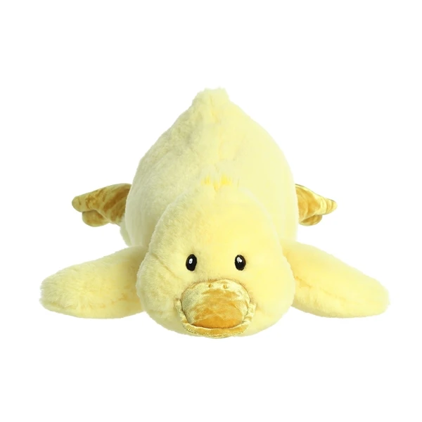 This Plush Duck 19 Inch Snoozle Plush by Aurora has learned just how to take life easy, and sheÂ’s ready, willing, and able to share her secret with you. Measuring approximately 19 inches, this large and lovely plush duck is deliberately under stuffed so sheÂ’s floppy as well as fluffy, and an absolute joy to cuddle. Lying flat on her tummy and ready for a nap, this Plush Duck 19 Inch Snoozle Plush by Aurora has a coat of the softest, most gentle yellow, while her beak and feet are a velvety golden color. With bean pellets inside to make her even cuddlier, this stuffed duck really does like jokes and funny stories, and with a few tales of her own, she will really quack you up. When sheÂ’s not snoozing and encouraging you to do the same, this Plush Duck 19 Inch Snoozle Plush by Aurora will really enjoy a game of hide and beak, or beak-a-boo, but really, sheÂ’ll be happy simply being by your side. A beautiful gift for Easter or a springtime birthday, this duck stuffed animal is also suitable for other holidays, too; you should see her at Halloween when she dresses as Count Duckula.