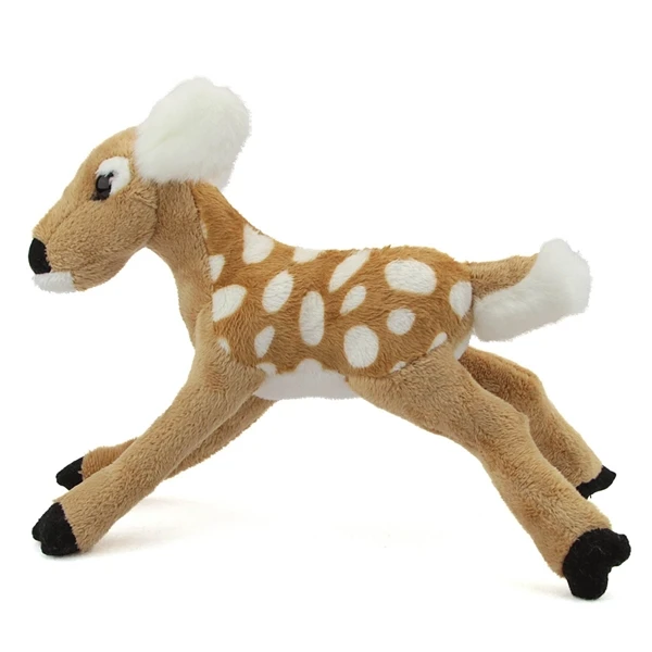 Nature lovers will go wild over the Plush White-tailed Deer Fawn Conservation Critter by Wildlife Artists! Measuring nine inches long, our white-tailed deer fawn plush animal is part of the Conservation Critters collection, which is a fun and unique line of stuffed animals that encourages children to explore and learn about a variety of wild animals from around the world. This stuffed white-tailed deer fawn is made with short and soft white light brown fur and features black eyes and a fluffy white tail. As with the entire collection of Conservation Critter stuffed animals by Wildlife Artists, the Stuffed White-tailed Deer Fawn Conservation Critter is made from all new, high quality, child safe materials and meets or exceeds all U.S. safety standards. Recommended for ages three and up, we suggest surface washing for this white-tailed deer fawn plush animal.