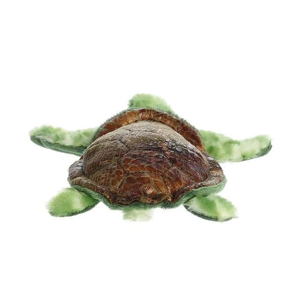 They say we are what we eat, and that is certainly true of Splish the Stuffed Sea Turtle Mini Flopsie by Aurora, because her vibrant green body gets its color from the plant material she eats; thatÂ’s right, green sea turtles are vegetarians, and they are, in fact, the only species of sea turtle that only eats plants. Fortunately for you, you wonÂ’t need to bring home copious amounts of sea grass and algae, because this particular plush sea turtle will happily exist on a diet of love and affection. Measuring approximately 8 inches, Splish the Stuffed Sea Turtle Mini Flopsie by Aurora is only a fraction of the 40 inches these giants usually reach, so she will fit easily into the coziest of homes, but she is still big enough to give wonderful cuddles when you need a bit of comfort. Made from a luxurious plush fabric, this stuffed sea turtle is much easier to hug than the real thing, because she is filled with recycled plastic beans, meaning she is super squishy and comforting. With an olive-brown shell –or carapace, to give it its posh word – that’s made from the same super soft plush fabric, Splish the Stuffed Sea Turtle Mini Flopsie by Aurora will make a wonderful gift for anyone who adores these majestic creatures, and because this sea turtle stuffed animal is the perfect size for small hands, she might just be the first step in a childÂ’s lifelong fascination with marine life, too.