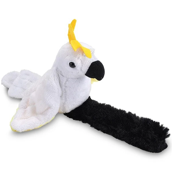 Do you ever wonder why you donÂ’t have a mimicking bird friend on your arm reinforcing all your positive statements? Well wonder no longer with our Stuffed Sulphur Crested Cockatoo Perching Parrot with Mimicking Sound by Wild Republic. This bird will not only grip your arm with its built-in snap bracelet, but it will also mimic everything you say! Mimic everything I say? YES. Mimic everything you say! Its easy. Simply press on the belly of this seven-inch Sulphur Crested Cockatoo and speak. It will then repeat what you said, but in a higher pitch! The batteries come included so this stuffed Sulphur Crested Cockatoo Perching Parrot is ready to play right out of the package! You can partake in all sorts of pleasant, perky and playful conversations with your new Perching Parrot Cockatoo friend. You can also gather your human friends and have a Perching Parrot party. With the Stuffed Sulphur Crested Cockatoo Perching Parrot with Mimicking Sound by Wild Republic youÂ’re sure to be the most popular pirate in the bunch. Just when you thought it couldn’t get any better, you can add a personal flair to this plush Sulphur Crested Cockatoo Perching Parrot. Find the Choose Your Options box to select a bandana, a font color, a font style, and enter a personalized message. What are you waiting for? Order one of your very own today!